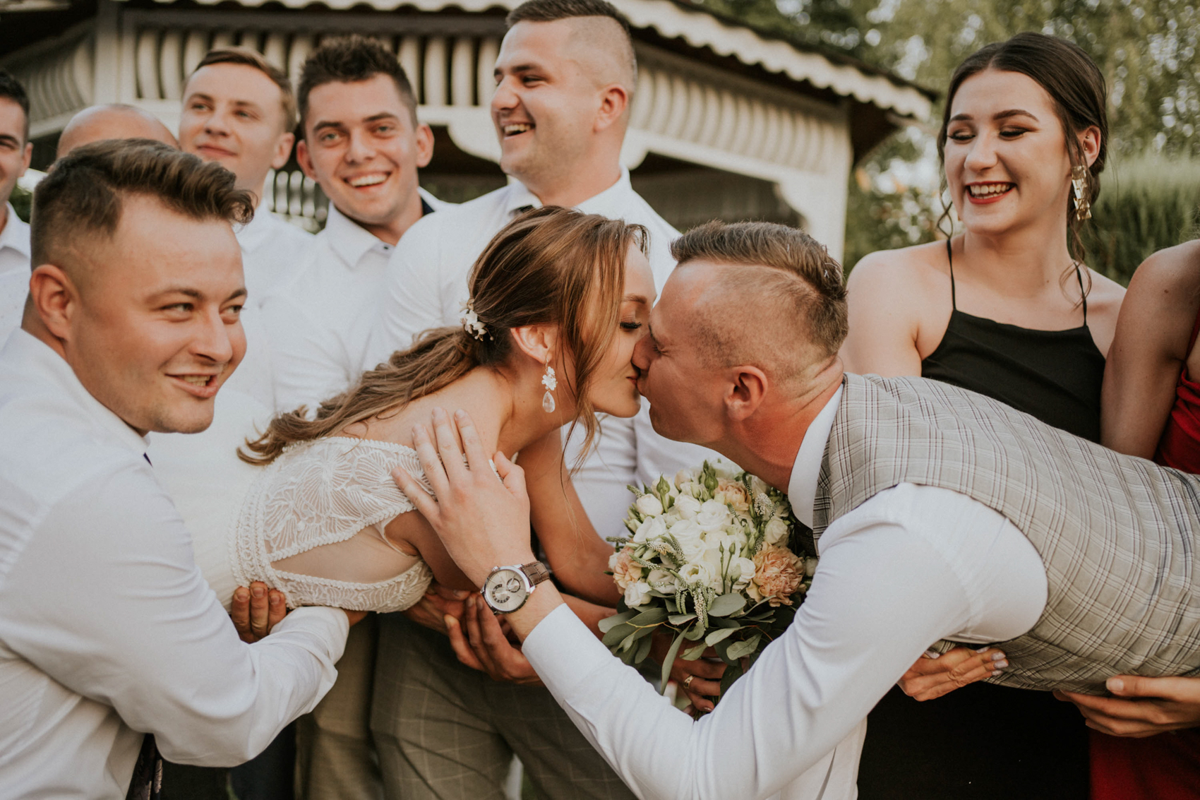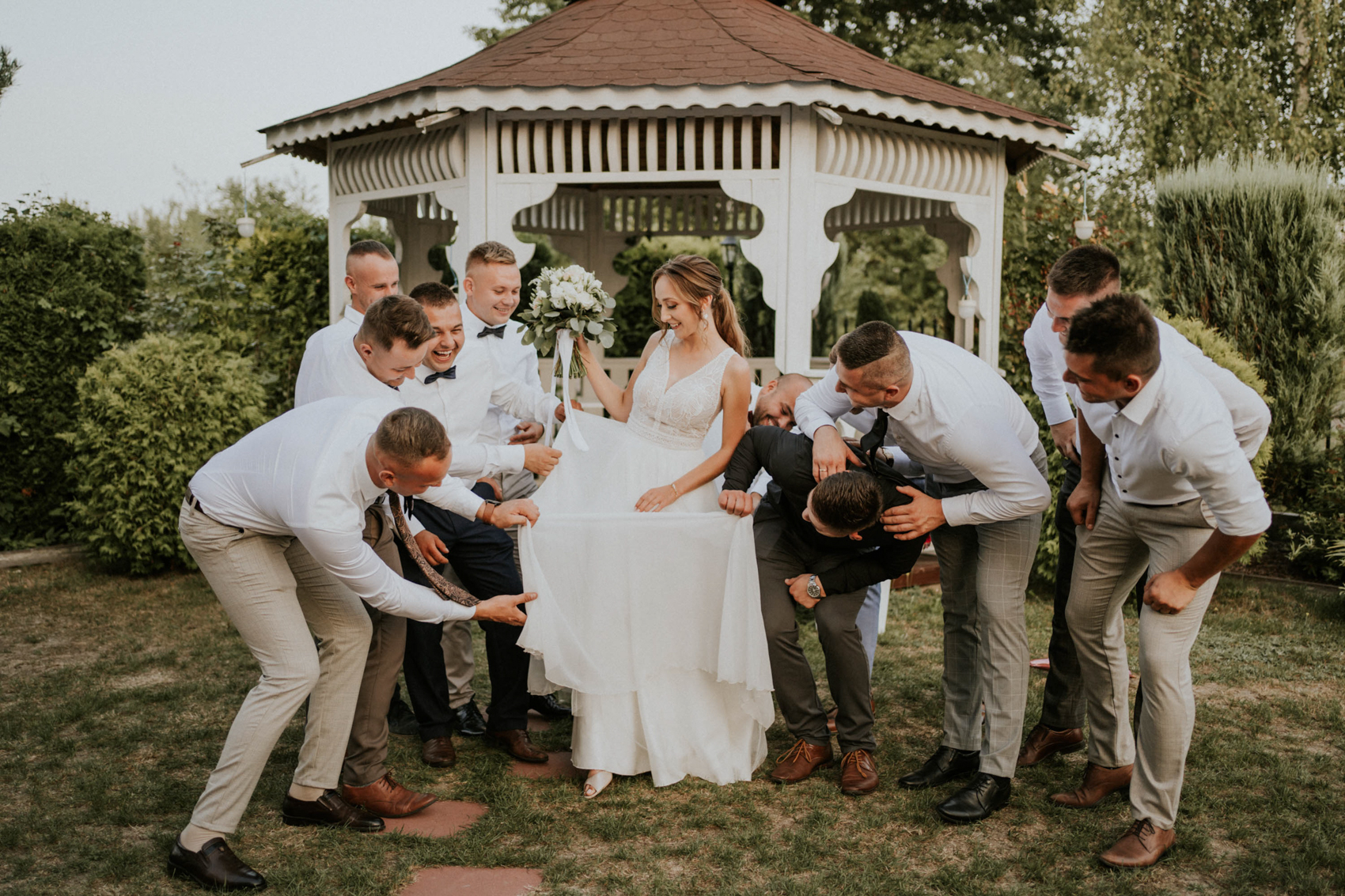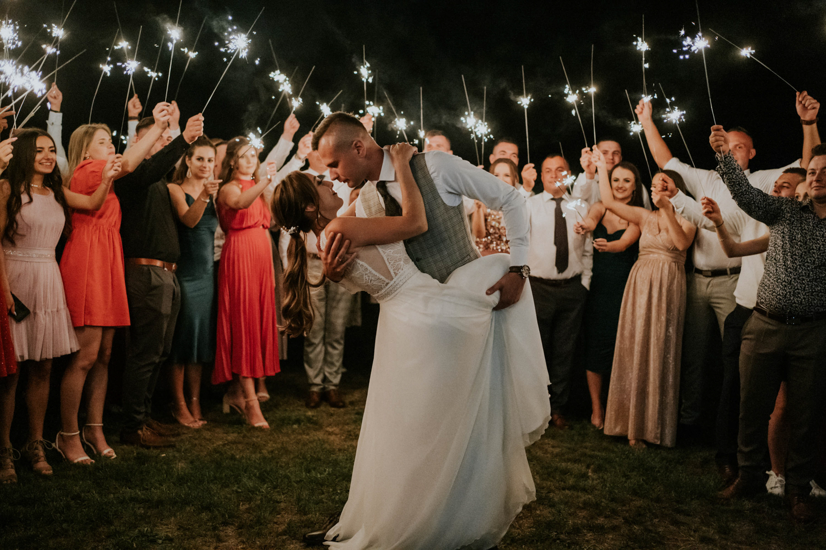 Sierpniowe słońce, kolorowe dekoracje, delikatne kwiaty i urocze detale sprawiły, że miejsce wyglądało jak bajkowy ogród. Jednak to nie tylko estetyka sprawiła, że to wesele było tak wyjątkowe. Wszyscy bawili się jak nigdy dotąd, tańcząc do późnych godzin nocnych przy dźwiękach ulubionych piosenek.